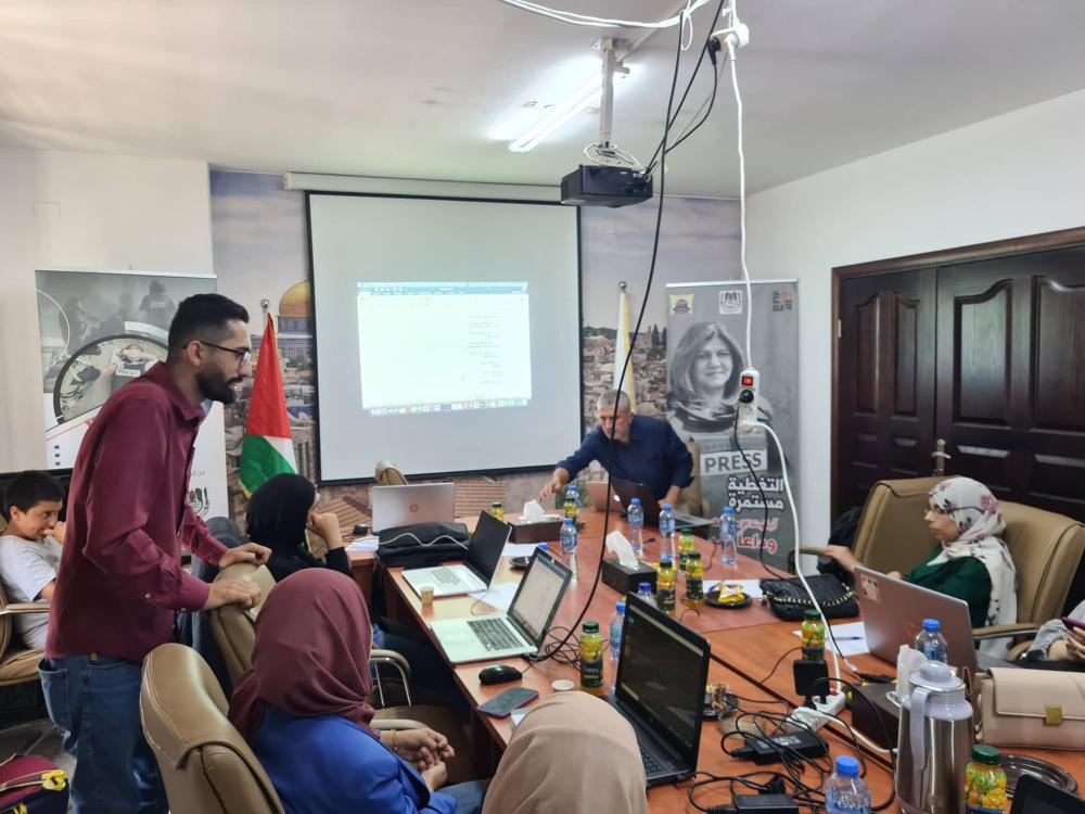 وحاضر في الدورة التي شارك فيها (13) صحفيا من الضفة أ. خلدون البرغوثي وأ.أمجد حسين اللذين قدما نماذج عملية حول استخدام تطبيقات تكنولوجية لتحويل الأرقام الاقتصادية إلى قصص صحفية على شكل فيديوجرافيك وانفروجرافيك.