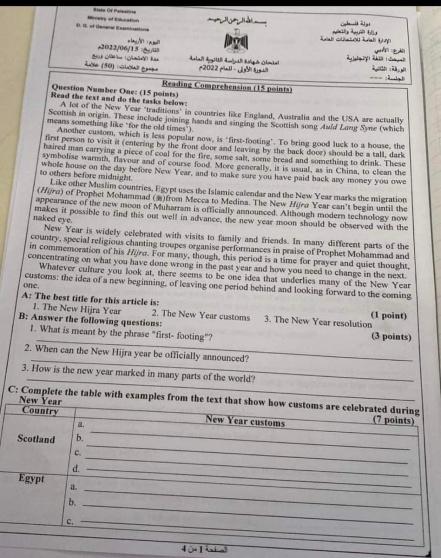 إجابات امتحان اللغة الإنجليزية للتوجيهي الأدبي 2022: