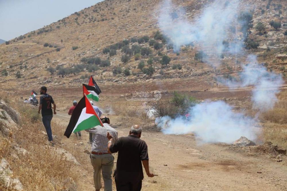 كما أصيب 9 مواطنين بالرصاص المطاطي، والعشرات بالاختناق في مسيرة كفر قدوم الأسبوعية المناهضة للاستيطان.