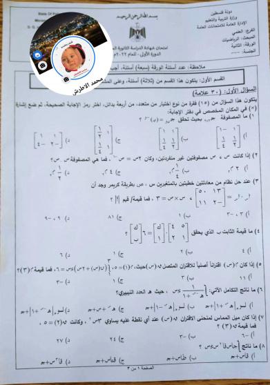 إجابات امتحان الرياضيات توجيهي فلسطين 2022: