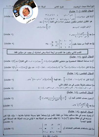 ونرفق لكم أجوبة إجابات امتحان الرياضيات الورقة الثانية الفرع العلمي للثانوية العامة توجيهي فلسطين 2022 بالإضافة إلى أسئلة الامتحان الذي يعتبر من أصعب الاختبارات للفرع العلمي من التوجيهي.