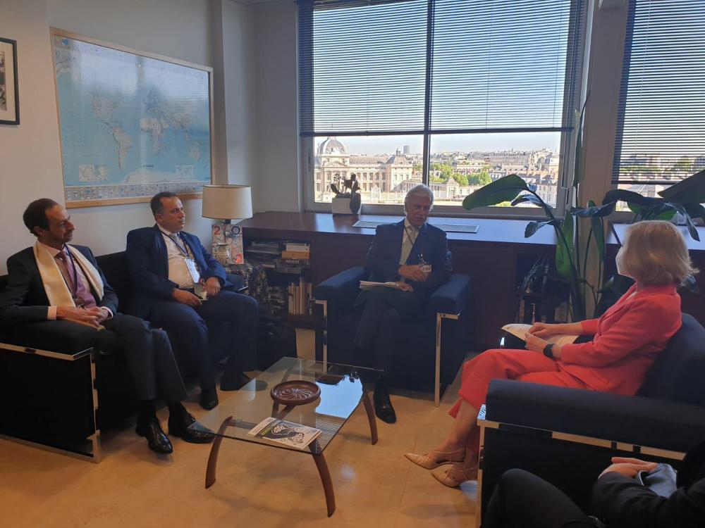جاء ذلك خلال مجموعة لقاءات عقدها وفد دولة فلسطين المشارك في أعمال القمة التحضيرية لقمة تحويل التعليم؛ برئاسة أ.د عورتاني وعضوية رئيس وفد فلسطين الدائم لدى "اليونسكو" السفير منير أنسطاس، وأمين عام اللجنة الوطنية الفلسطينية للتربية والثقافة والعلوم رئيس المجلس التنفيذي لمنظمة العالم الإسلامي للتربية والعلوم والثقافة "الإيسيسكو" د. دوّاس دوّاس، وبحضور مديرة مكتب "اليونسكو" لدى دولة فلسطين نهى بوازير، حيث التقى مع مساعد المدير العام لليونسكو لقطاع التعليم ستيفاني جينيني، ومدير عام المنظمة العربية للتربية والثقافة والعلوم "الألكسو" د. محمد ولد إعمر، والمدير العام لمنظمة "الإيسيسكو" د. سالم بن محمد المالك كل على حدة.