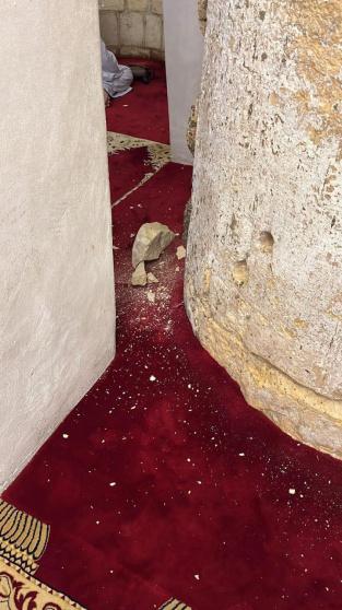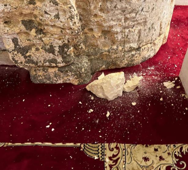 قطعًا من الحجارة تتساقط من أعمدة في المسجد الأقصى