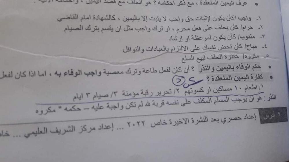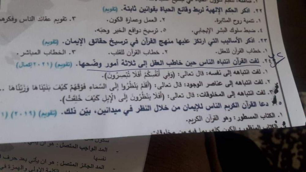 أسئلة وأجوبة امتحان التربية الدينية 2022 للعلمي والأدبي: اضغط هنا