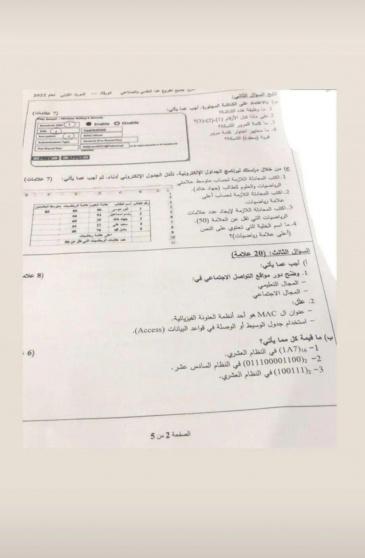 إجابات امتحان التكنولوجيا للثانوية العامة توجيهي فلسطين 2022
