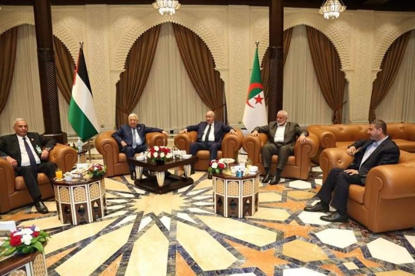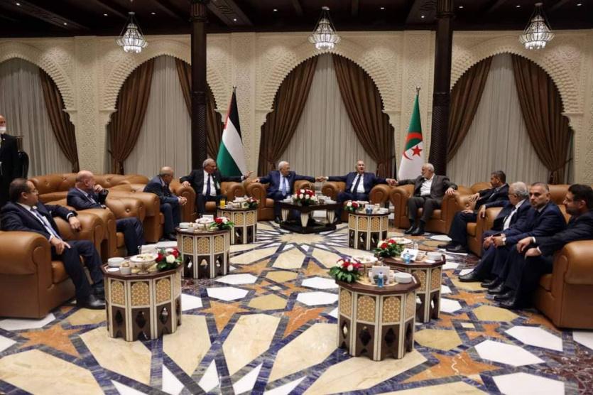 عقد مساء اليوم الثلاثاء، لقاء جمع الرئيس الفلسطيني محمود عباس ورئيس المكتب السياسي لحركة حماس إسماعيل هنية برعاية الرئيس الجزائري عبد المجيد تبون.