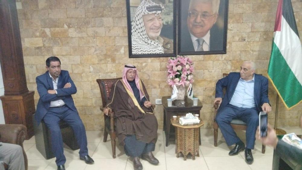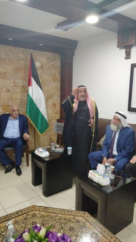 ونقل الشيخ الفايز تحيات ملك الاردن عبد الله الثاني وتحيات الحكومة الأردنية والجيش العربي الاردني والشعب الاردني، لابناء الشعب الفلسطيني، مؤكدا وحدة الدم والمصير بين الشعبين الأردني والفلسطيني.
