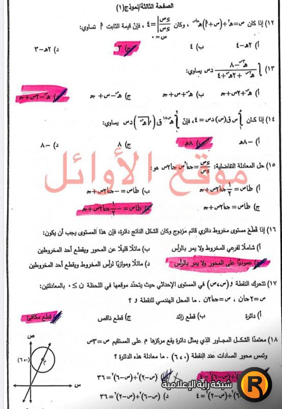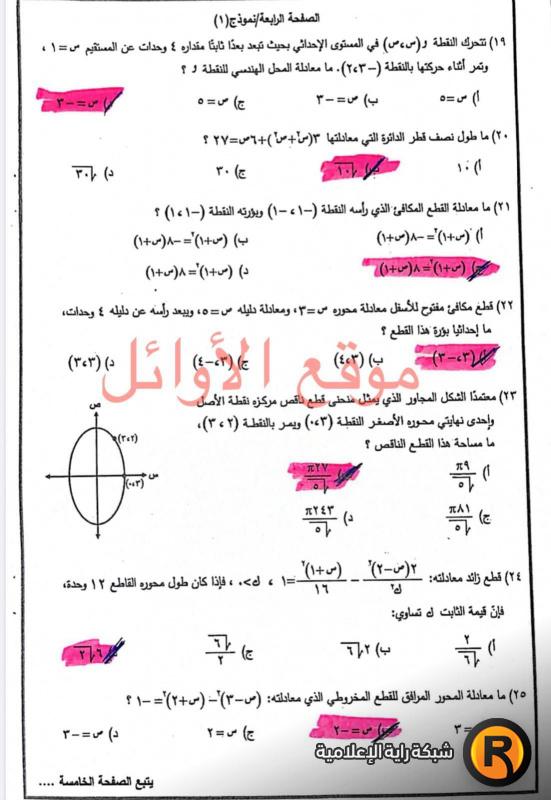 إجابات امتحان الرياضيات الورقة 2 الثانية العلمي للثانوية العامة توجيهي الأردن 2022