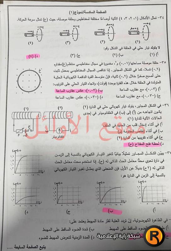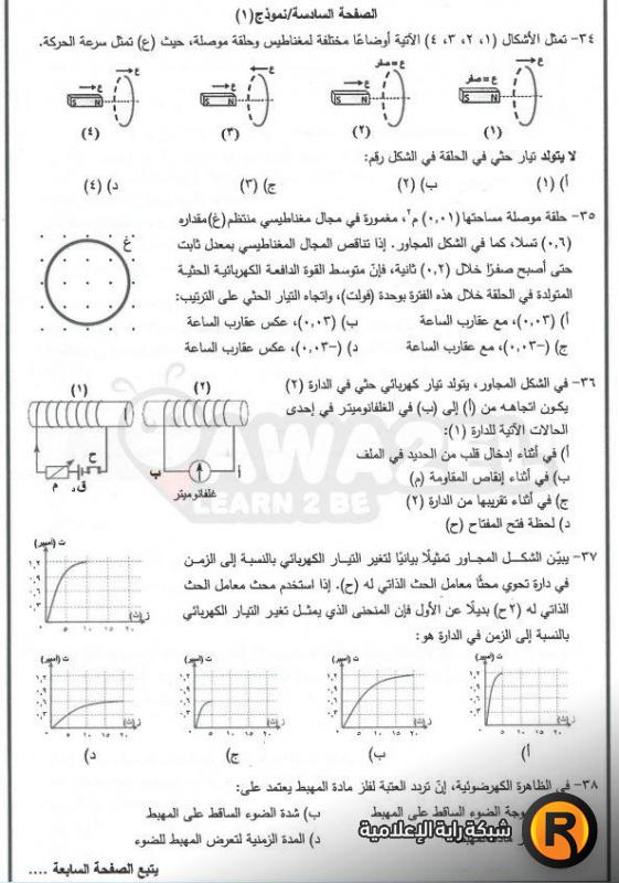 امتحان الفيزياء الاضافي لطلبة الفرع الصناعي: اضغط هنا