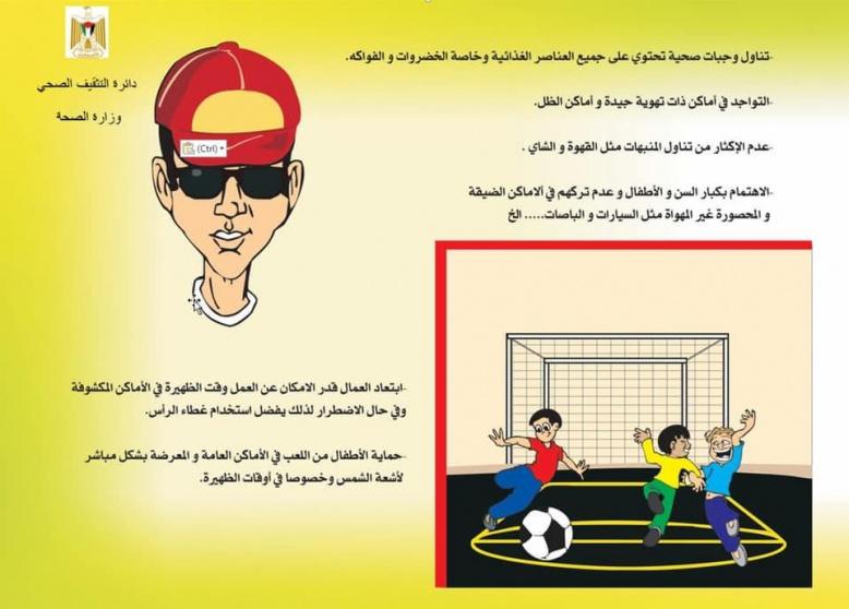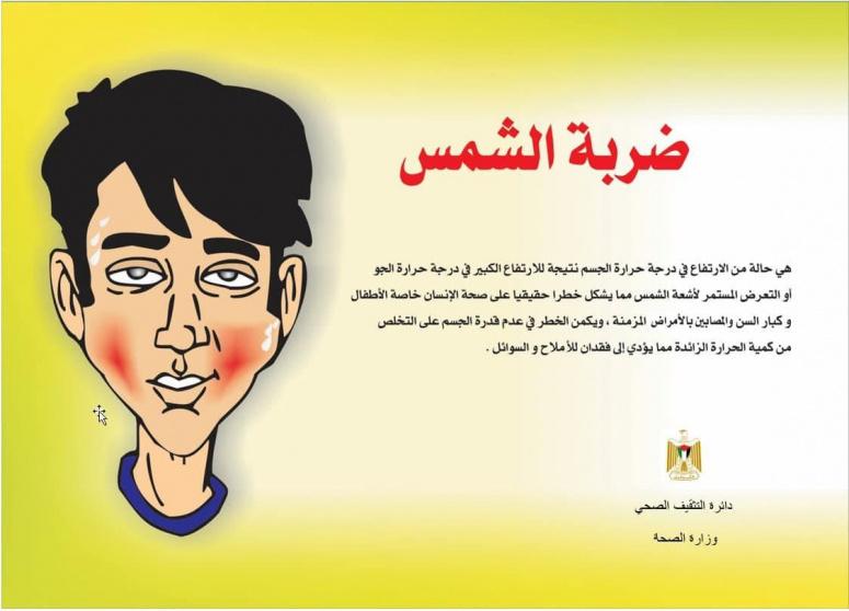 وطالبت الصحة من المواطنين وتحديداً كبار السن والأشخاص الذين يعانون من أمراض مزمنة توخي الحذر والامتناع قدر الإمكان عن التعرض لأشعة الشمس المباشرة.