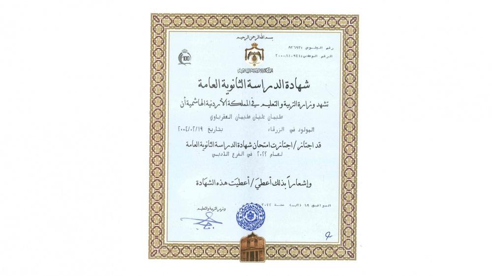 أوائل الثانوية العامة التوجيهي في الأردن 2022 الفرع الأدبي: