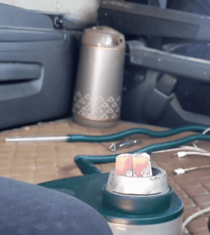 ضبط سائق يطهو الطعام ويدخن الأرجيلة داخل مركبته