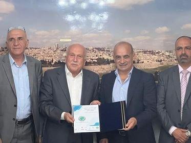 سلّم اليوم رئيس جمعية رجال الأعمال الفلسطينيين السيد محمد العامور أمانة سر المجلس التنسيقي لمؤسسات القطاع الخاص لرئيس مجلس إدارة مركز التجارة الفلسطيني – بال تريد السيد إبراهيم برهم.