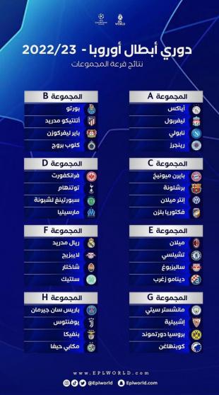 أسفرت قرعة دور المجموعات في دوري أبطال أوروبا لموسم الكروي الجديد 2022 - 2023، عن مواجهات نارية بين الفرق الأوروبية، حيث اجريت القرعة اليوم الخميس، في مدينة إسطنبول التركية.