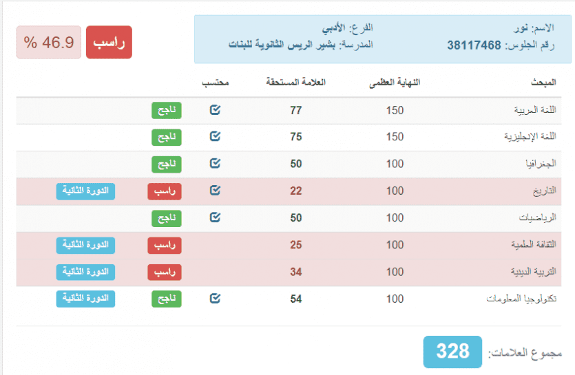 وأفادت مصادر محلية، أن السويركي، رسبت للمرة الثانية في اختبارات الثانوية العامة (الدورة الثانية)، بعدما رسبت في الدوري الأولى.