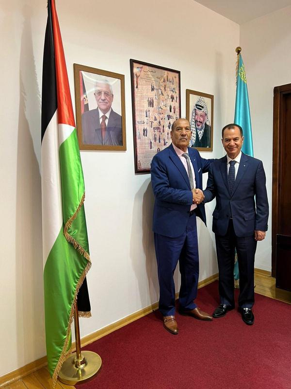 ناقش السفير الفلسطيني وعميد السلك الدبلوماسي العام لدى كازاخستان، د. منتصر أبو زيد، اليوم الاثنين، مع السفير الجزائري الجديد لدى نور سلطان "السيد كمال فالنيش"، أهمية العمل العربي المشترك في كازاخستان وتجيير ذلك لنصرة القضية الفلسطينية.