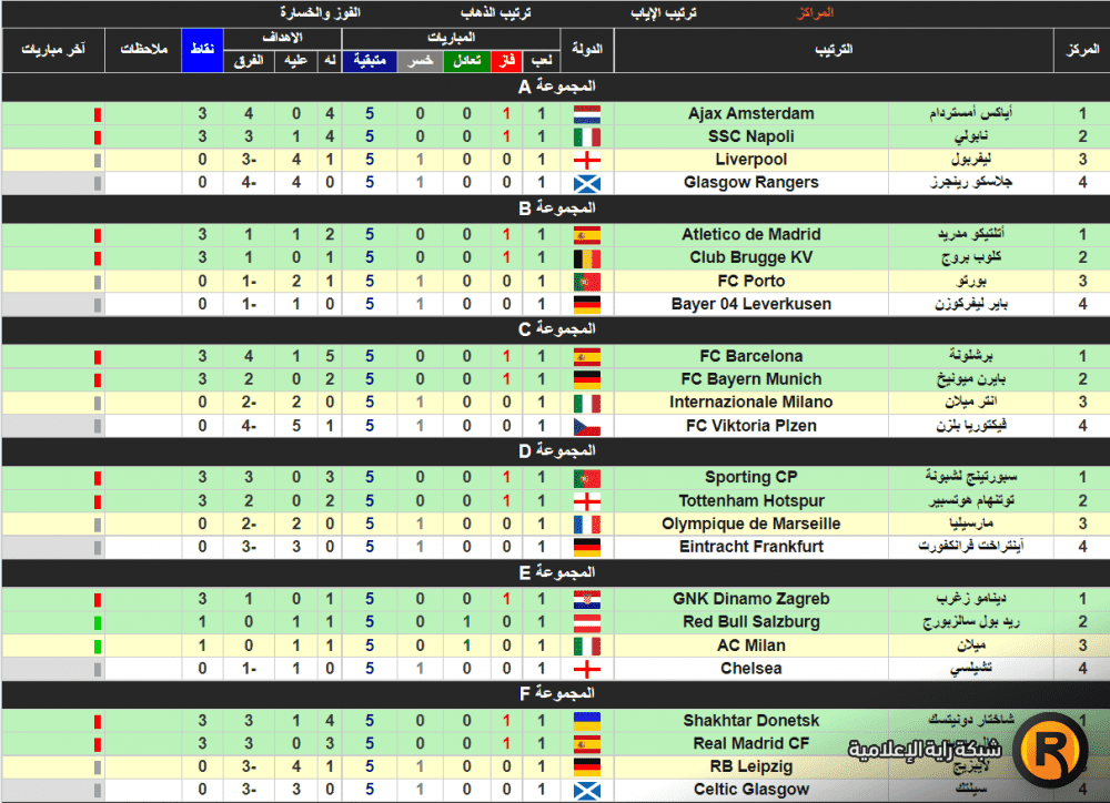 جدول ترتيب مجموعات دوري أبطال أوروبا 2022 مجموعة بايرن ميونخ برشلونة ليفربول