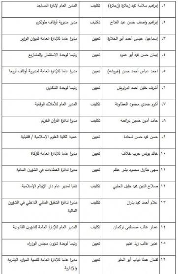 أصدر وزير الأوقاف والشؤون الدينية الشيخ حاتم البكري، عددا من القرارات الإدارية الخاصة بتنقلات الموظفين في المراكز الإدارية في الوزارة والمديريات والإدارات العامة والمؤسسات التابعة لها، وذلك ضمن سياسة واستراتيجية الوزارة في إحداث نقلة نوعية في العمل والرقي بالأداء شملت تنقلات وتكليفات داخلية .