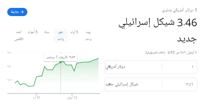 سعر صرف الدولار الآن مقابل الشيكل الإسرائيلي