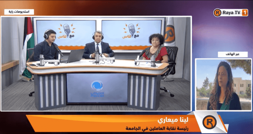 "رايـة" فتحت ملف أزمة جامعة بيرزيت، واستضافت عدد من الشخصيات المعنية، إذ تحدثت لينا ميعاري رئيس نقابة العاملين في جامعة بيرزيت، عن تسلسل الأزمة قبل الوصول للإضراب.
