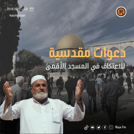 من جانبه، دعا خطيب المسجد الأقصى الشيخ عكرمة صبري إلى تكثيف الرباط داخل باحات المسجد، لإحباط المخططات الاستيطانية بتنفيذ اقتحامات غير مسبوقة داخله، تزامنا مع الأعياد اليهودية.