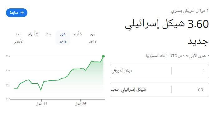 بحسب المعلومات الرسمية المتوفرة، وصل سعر صرف الدولار الأمريكي الآن كما يظهر على الشاشة بإلى 3.60 شيكل إسرائيلي، في ارتفاع جديد عن ساعات الصباح.