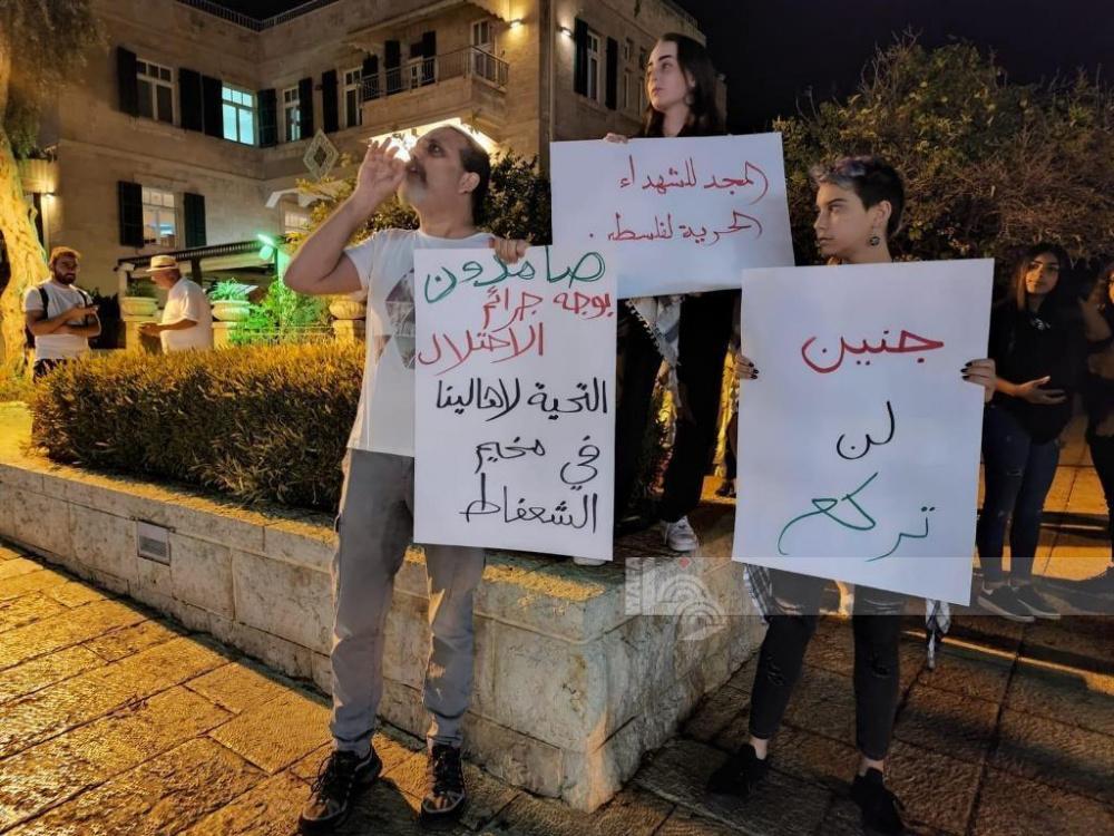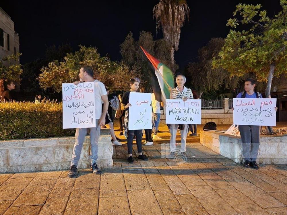 كما رفعوا لافتات كتب عليها بالعربية والعبرية "ارفعوا أياديكم عن مخيم شعفاط"، و"الفاشية لن تمر"، و"ستنتصر إرادة شعبنا في الحرية"، و"نعم للسلام العادل، لا للاحتلال".
