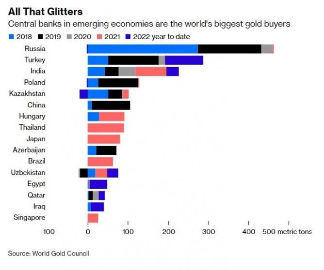 وفيما يلي قائمة بكبار مشتري الذهب في العالم في السنوات الخمس الماضية، والتي استندت لبيانات مجلس الذهب العالمي: