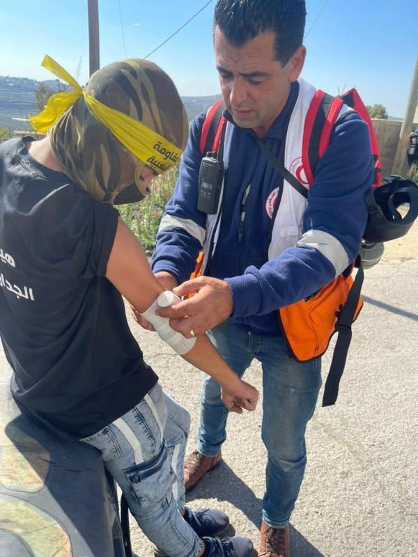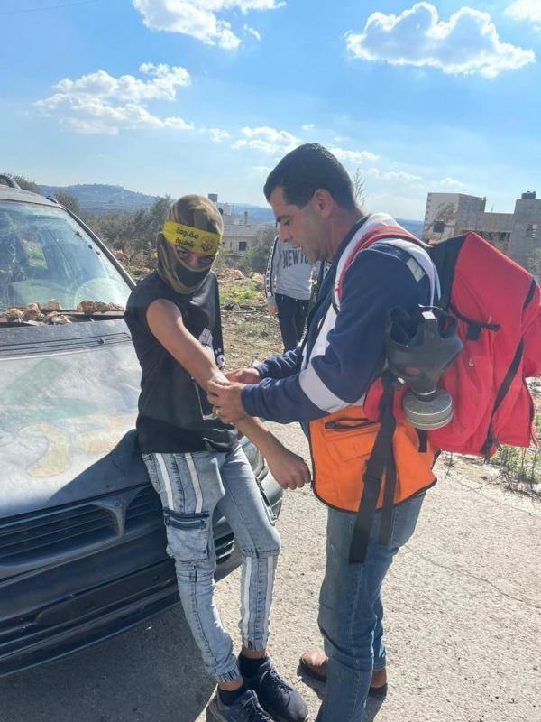 وأصيب 5 مواطنين بالاختناق خلال مواجهات مع الاحتلال في جبل صبيح في بلدة بيتا،وتعرض طاقم الهلال الأحمر للاستهداف بقنابل الغاز.