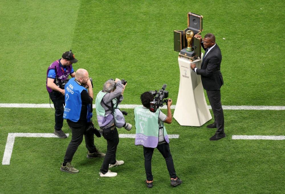 وقبل انطلاق حفل الافتتاح، رفع أسطورة منتخب فرنسا حامل لقب النسخة الماضية عام 2018، مارسيل ديساييه كأس العالم للجماهير قبل وضعه في مكانه المخصص بالملعب.