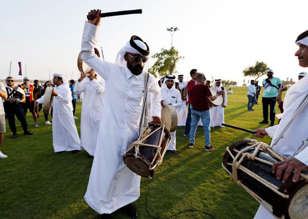 من محيط الملعب تبدأ أولى إشارات التشجيع، جنسيات مختلفة، أعلام قطرية وإكوادورية على أكتاف المشجعين المارّين إلى جانب صفّ من الجمال والخيول التي تبرز ثقافة البلد المضيف.
