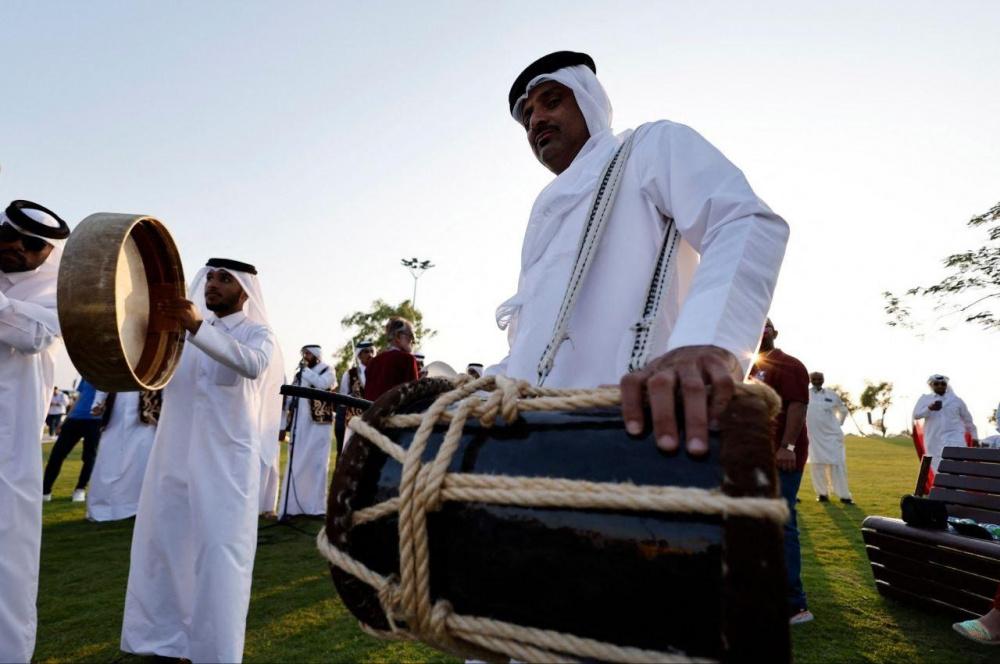 على طول الطريق المؤدية إلى استاد البيت في مدينة الخور الشمالية والذي يبعد نحو خمسين كيلومترا شمال العاصمة الدوحة والمستوحى من الخيمة التقليدية التي سكنها أهل البادية، ترتفع الأعلام القطرية على مداخل البيوت ومن نوافذ السيارات.