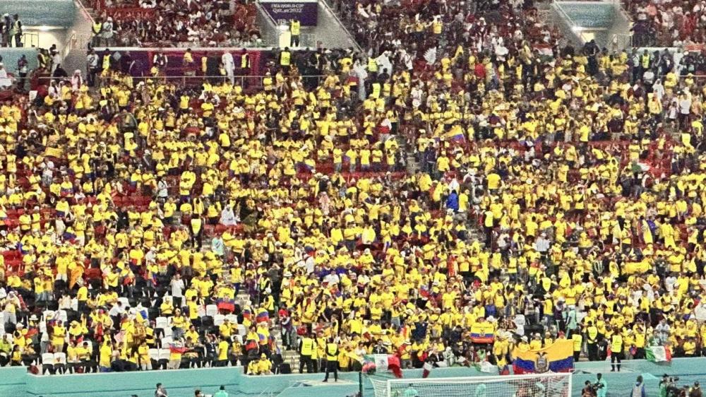 وكان رصد الجماهير القطرية سهلاً إذ أن الغالبية ترتدي الزي التقليدي الأبيض مع العقال، فيما كان اللون الأصفر عنوان الإكوادوريين.
