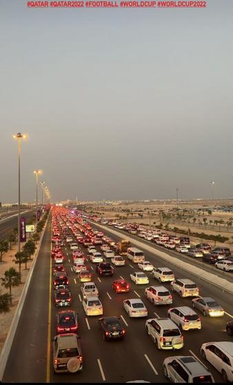 كان الازدحام ملحوظا للسيارات الساعية للوصول إلى الملعب، بعدما اقترحت السلطات على المقيمين استخدام آلياتهم لإتاحة شبكات المترو والباصات لنقل الجماهير الآتية من الخارج.
