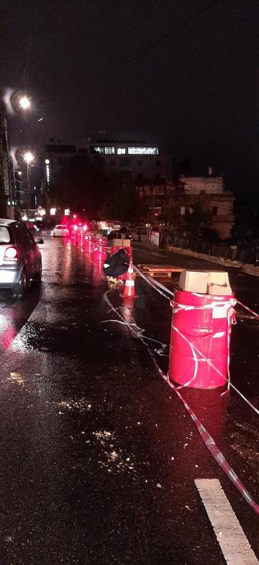 انهار مقطع من شارع خليل ابو ريا في رام الله (قرب سوبر ماركت بغداد) بجانب مبنى قيد الانشاء في المكان بسبب الامطار الغزيرة التي هطلت امس والليلة الماضية.