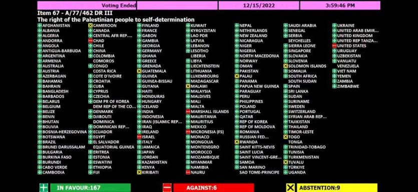 الأمم المتحدة تقر حق الشعب الفلسطيني في تقرير مصيره بأغلبية ساحقة