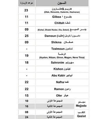 برنامج زيارات أسرى جنين وطوباس للشهر القادم