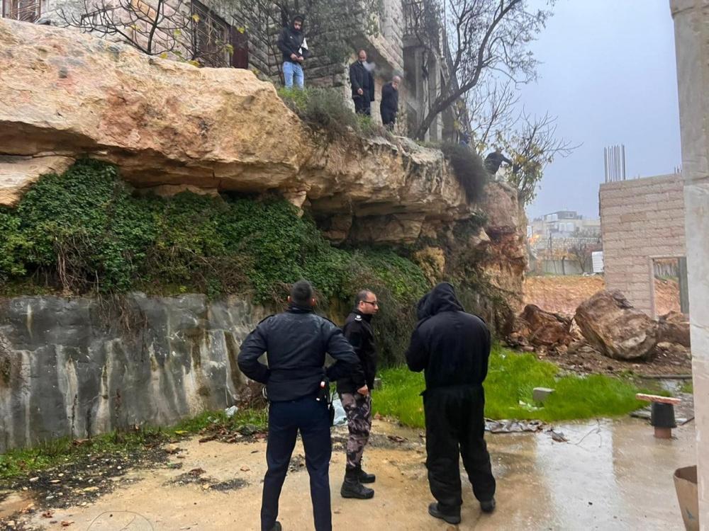 صور: إخلاء منزل وإغلاقه احترازيا بعد انهيار صخري شمال الخليل