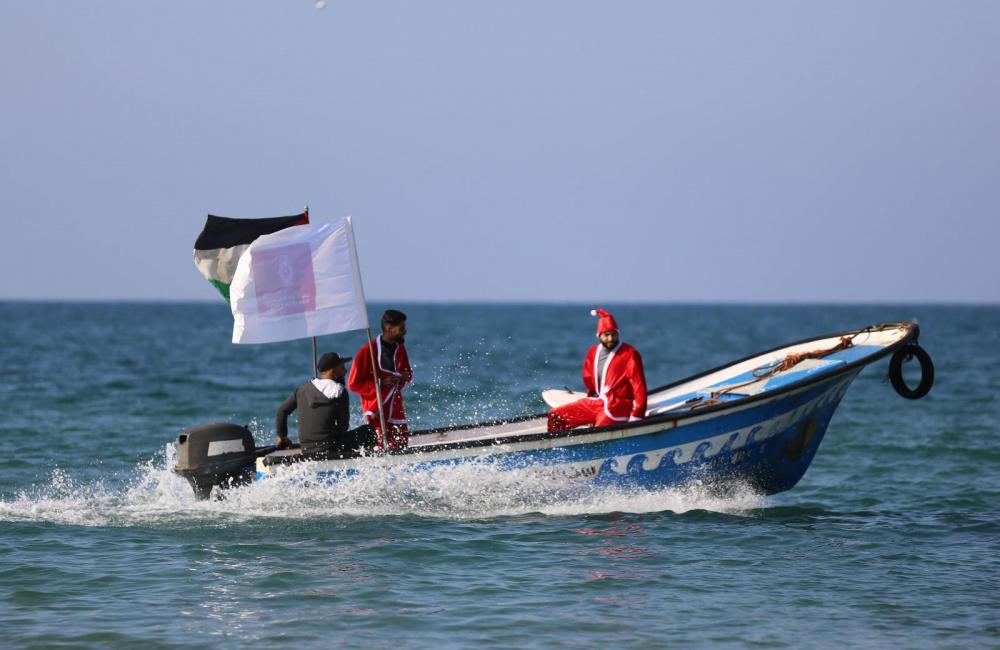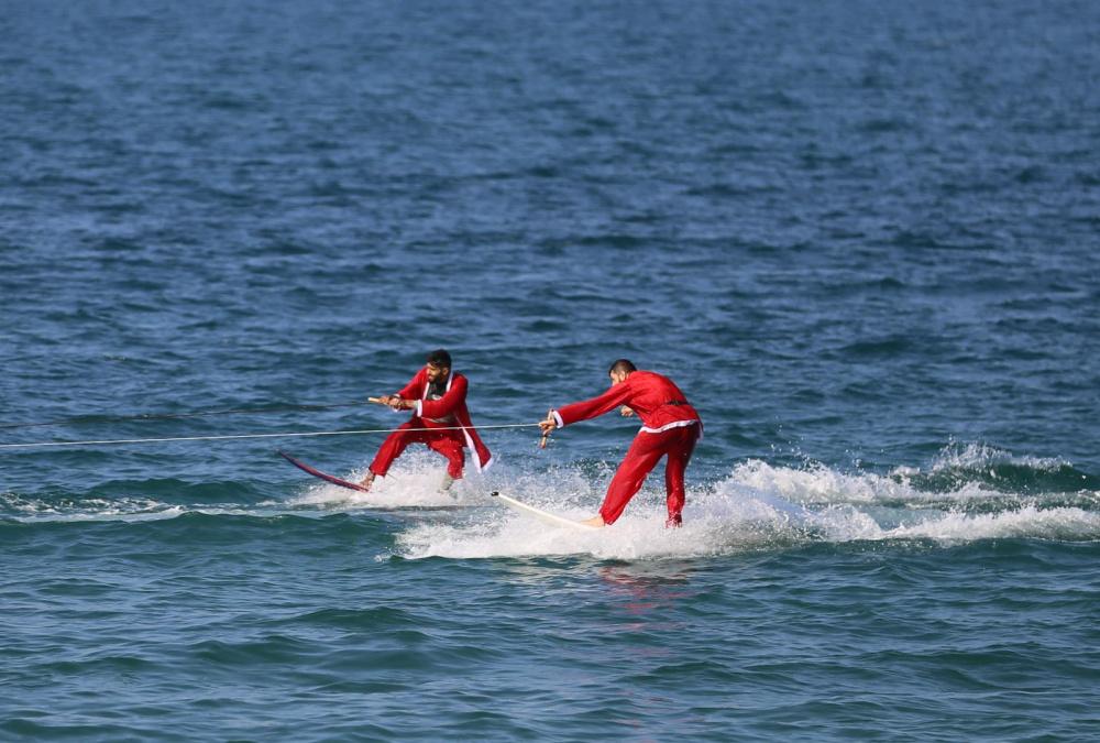 وخلال الفعاليّة، قام عدد من أعضاء فريق التزلّج التابع للاتحاد الفلسطيني للشراع والتجديف بارتداء زي "بابا نويل" والقيام بسلسلةٍ من الحركات الاستعراضيّة داخل البحر، وذلك من خلال سحبهم عبر قارب إلى داخل المياه إلى جانب العديد من الحركات الاستعراضيّة.