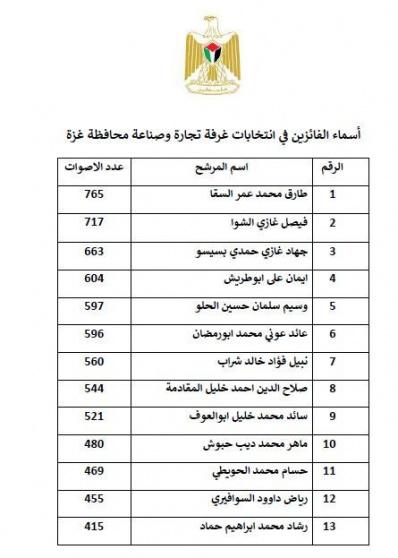 أسماء الفائزين في انتخابات غرفة تجارة وصناعة محافظة غزة: