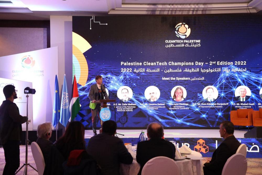 وأضاف: "في فلسطين، تلتزم اليونيدو بإزالة الحواجز التي تعترض تطوير الأعمال والتكنولوجيا في الصناعات، وبتعزيز تحقيق النجاح التجاري المستدام من خلال إتاحة خبراتها لنمو واستدامة النظام البيئي الفلسطيني للتكنولوجيا النظيفة".