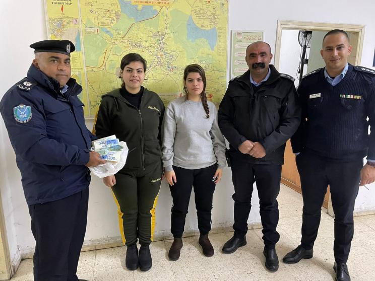 وذكرت إدارة العلاقات العامة والاعلام بالشرطة في تصريح صحفي تلقت "رايــة" نسخة عنهن بأن الفتاة نتالين صليبا أبو سعدى من سكان محافظة بيت لحم عثرت عصر اليوم على ظرف ورقي بداخله مبلغ مالي يقدر بقيمة 61 ألف شيكل، قامت بتسليمه لشرطي المرور العامل بالميدان على إحدى مفارق مدينة بيت لحم.