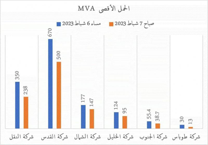 من جانب اخر، تابع مجلس تنظيم قطاع الكهرباء الفلسطيني التطور على الاحمال خلال هذا المنخفض الجوي حيث سجلت الاحمال القصوى التالية حسب ما هو موضح ادناه.