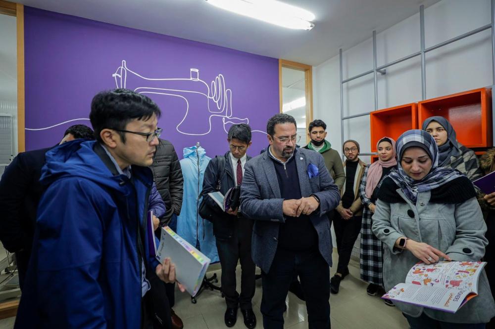 اطلع وفد من مكتب الممثلية اليابانية لدى فلسطين، اليوم الثلاثاء، على سير العمل في المركز الإبداعي لتصميم الأزياء "خيطان غزة"، الذي افتتح العام الماضي ضمن مشروع "خيطان" المنفذ من منظمة الأمم المتحدة للتنيمة الصناعية "اليونيدو" بالتعاون مع وزارة الاقتصاد الوطني، وبتمويل من الحكومة اليابانية.