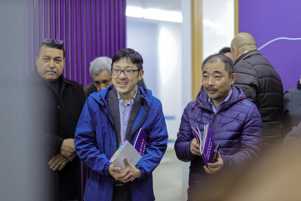 وضم الوفد، رئيس القسم الاقتصادي في الممثلية يوسوكي تابوتشي وسكرتير أول في الممثلية يوكياسو سومي، حيث كان في استقبالهم مدير مكتب برنامج "اليونيدو" في فلسطين أحمد الفرا.