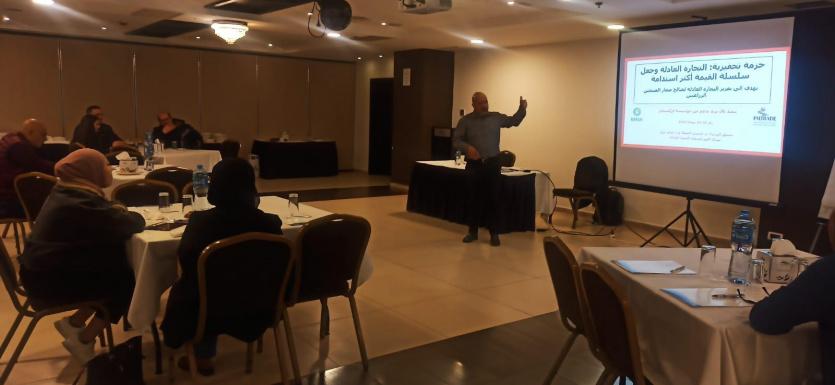 وعرض (بال تريد) بدعم من مؤسسة (اوكسفام) في ورشة عمل برام الله، بمشاركة ممثلي الشركات التجارية في قطاعات مختلفة، نتائج دراسته المتعلقة بحزمة تحفيزية: التجارة العادلة وجعل سلسلة من تدخلات القيمة الأكثر استدامة والتي تهدف الى تعزيز التجارة العادلة لصالح صغار المنتجين الزراعيين، لدعم صمودهم واستمرار تواجدهم في السوق المحلية وربطهم بالأسواق الخارجية.