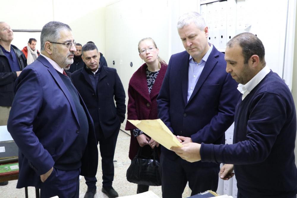 وقام الوفد خلال الزيارة بزيارة معرض ميثاق وجولة في دوائر المؤسسة، اطلعوا خلالها على جزء محفوظات المؤسسة من كنوز مخطوطة تعطي تصورًا كاملًا عن الحياة في فلسطين خلال العهد العثماني وفترة الانتداب البريطاني من كل جوانبها الاجتماعية والاقتصادية والسياسية والثقافية، كما اطلعوا على تجربة المؤسسة المتميزة في ترميم وصيانة المحفوظات.