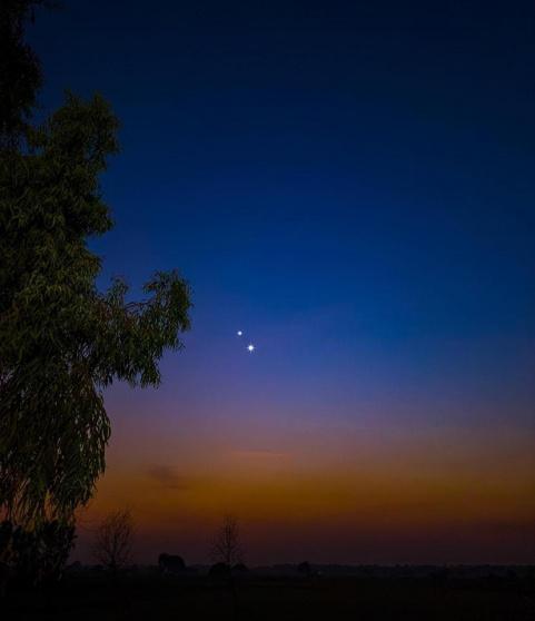 من جهتها، نشرت الجمعية الفلكية الفلسطينية، مساء اليوم، صورة لـ "الاقتران العظيم" بين كوكبي الزهرة والمشتري في سماء فلسطين.