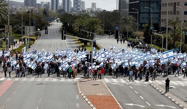 وبدأ الآلاف منذ صباح اليوم، في الخروج والمشاركة في مظاهرات "يوم مناهضة الديكتاتورية"، وتم إغلاق تقاطعات وطرق رئيسية في جميع أنحاء البلاد، بما في ذلك شوارع "كابلان" و"إيفن غفيرول" في تل أبيب، على أن تكون ذروة الاحتجاجات في مظاهرة كُبرى تنظم مساء اليوم، وسط تل أبيب.