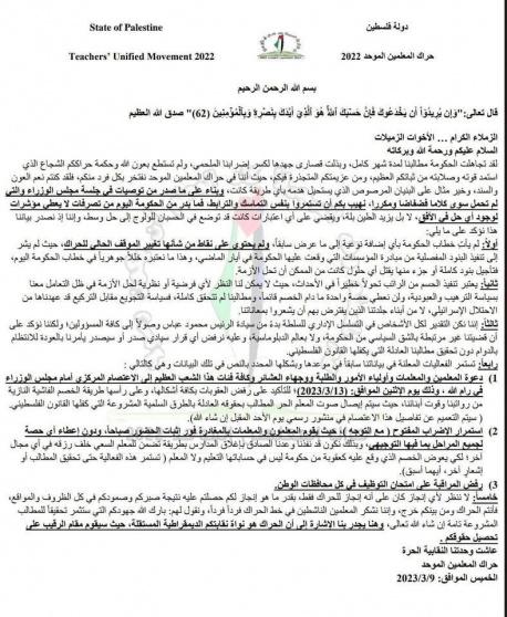 وفيما يلي نص بيان حراك المعلمين الموحد:
